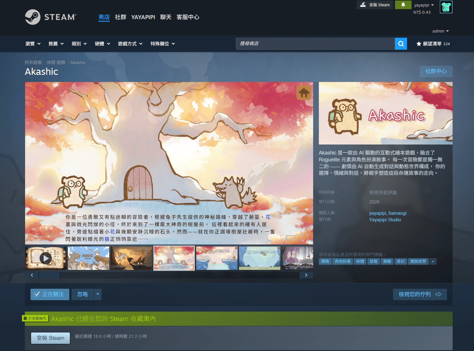 正在開發結合 AI 功能的繪本互動遊戲 - 《阿卡西》